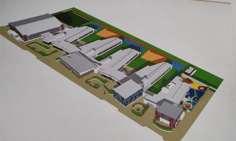Un proyecto para “celebrar los 50 años” de la empresa Aluar se hará en el barrio Perón en tierras de la empresa San Miguel que son donadas por este motivo para la construcción de una escuela con los tres niveles; jardín, primario y secundario. EL proyecto que debería estar listo para el 2027 será un complejo público y gratuito para los vecinos con gestión privada. La idea de la empresa es especializar a los estudiantes en temas industriales en el secundario. Además de utilizar una zona relegada de la ciudad donde hoy esta inutilizada para motorizarla.