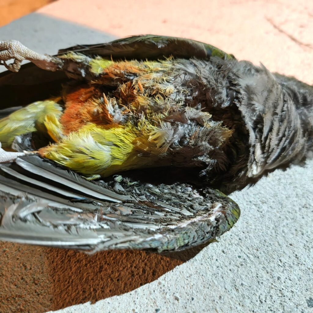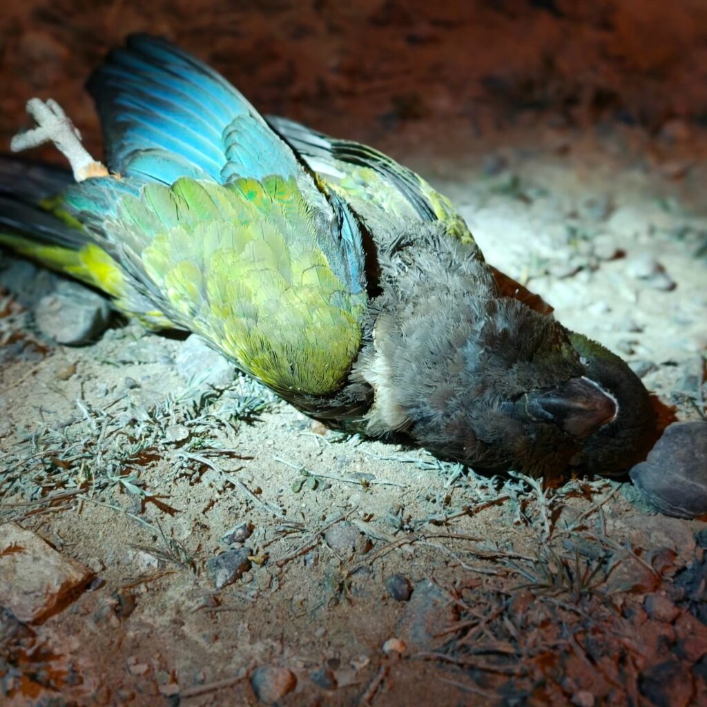 Según informó Servicoop, las aves “rompieron el arco voltaico de las redes de media tensión” en inmediaciones de la plaza de Lavalle y Piedrabuena. Como prueba irrefutable, la cooperativa difundió fotos de los loros electrocutados, justificando así el apagón que paralizó a comercios, vecinos y turistas durante gran parte de la jornada.