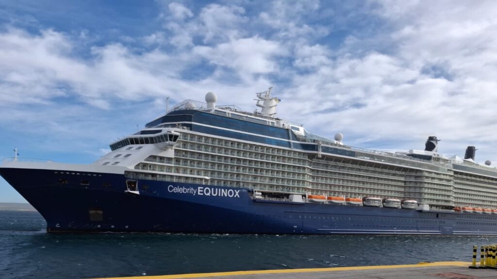 El Celebrity Equinox, de 317 metros de eslora y bandera de Malta, llegó al Golfo Nuevo luego de recalar en Punta Arenas, Chile. A bordo transporta a más de 3.900 personas, entre 2.751 pasajeros y unos 1.220 tripulantes, que desde temprano comenzaron a desplegarse por la ciudad y sus alrededores. Está previsto que esta tarde zarpe rumbo a Punta del Este.