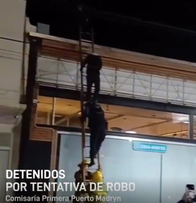 Dos jóvenes de 18 y 19 años anoche pasadas las 2 entraron por lo techos a la concesionaria Ford del centro de Puerto Madryn. Fueron detectados por elementos de seguridad y la policía de la comisaria primera llego al lugar para detenerlos. Tuvieron que subir al techo para desarmarles el operativo de robo. Mientras uno de los ladrones era detenido el otro intento escapar hacia la calle 28 de julio. Se encontraron elementos en una mochila como barreta y herramientas para forzar puertas.