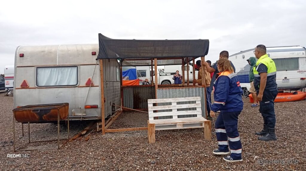 La municipalidad levanta una incipiente construcción en la playa de uno de los tantos habitantes