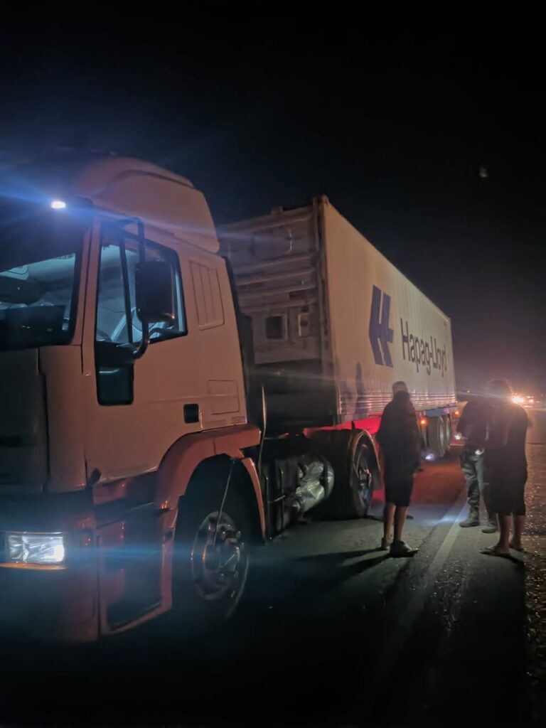 Una camioneta Kangoo venia muy rápido por la ruta 1, a la altura del Doradillo, cuando al pasar a un camión que venia en la misma dirección termino perdiendo el control y dando tumbos en el costado de la ruta. No hubo heridos mas que algun raspon.